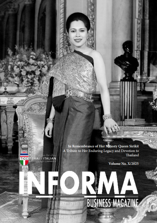Welcome to Informa Business Magazine, the monthly business magazine brought to you by the Thai-Italian Chamber of Commerce (TICC). As the leading voice in Thai-Italian business relations, Informa serves as your go-to resource for in-depth analysis, industry trends, and exclusive interviews. Our magazine is designed to keep you informed, inspired, and connected, providing valuable insights and opportunities for entrepreneurs, executives, and businesses in Thailand and Italy.