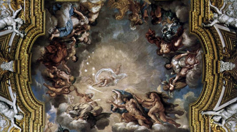 The Sala di Giove (Hall of Jupiter) is one of the most magnificent of all rooms in the Palazzo Pitti, Florence. In the Medici period, this room was used as an Audience Chamber or Throne Room. The richly decorated area is full of frescoes, white and gilt stucco works and plumes decorated with shells. It enhances the public role of this area and represents the crowing artistic achievement of Pietro da Cortona, who has dotted it with extraordinarily detailed inventions. The finished work is the result of his direction, starting with the many preparatory designs - many of which are preserved in the Collection of Prints and Drawings at the Uffizi Galleries - through to the direct coordination of the workers on scaffolding: painters, gilders, masons and stucco artists.