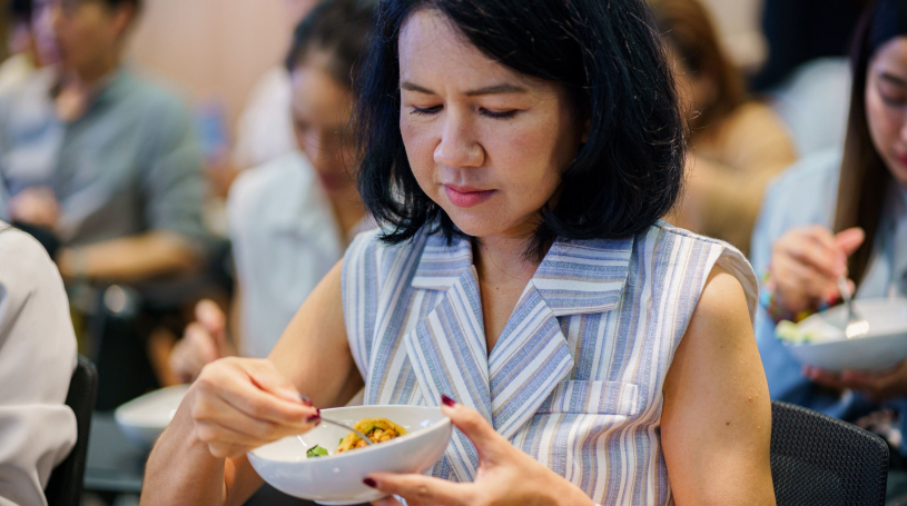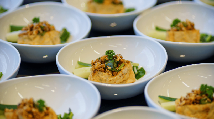 The event featured engaging sessions on creating savory and sweet vegan pastries, with dishes such as Leb Lentils Tofu Bag, Penne Nam Prik Ong, and Coconut Caramel Upside-Down Oats Cake. After the demonstrations, attendees had the opportunity to ask questions and receive insightful tips from Chef Mink.