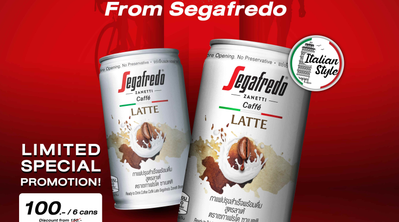 Special promotion for Segafredo’s fans! Only for this month! Buy Segafredo Latte Ready to drink coffee 6 cans for 100 THB only!