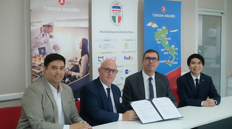 [Bangkok, Thailand - June 1, 2023] - The Thai-Italian Chamber of Commerce (TICC) and Turkish Airlines are pleased to announce the signing of a Memorandum of Understanding (MOU) aimed at enhancing trade, tourism, and cultural exchange between Thailand and Italy. The MOU signing ceremony took place on June 1, 2023, at the TICC offices in Bangkok, marking a significant milestone in the partnership between these two esteemed organizations.