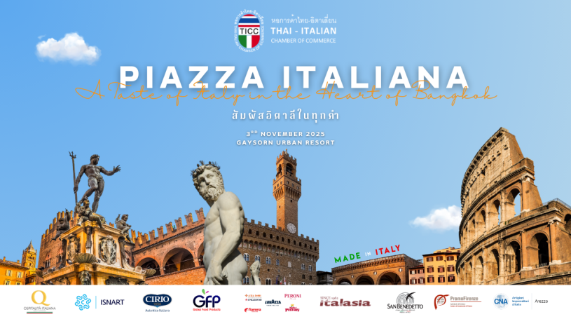 Bangkok, 18 July 2025 – The Thai-Italian Chamber of Commerce (TICC) proudly announces the official launch of Piazza Italiana: A Taste of Italy in the Heart of Bangkok, an exclusive event that will bring Italian excellence, culture, and innovation to the heart of Bangkok.