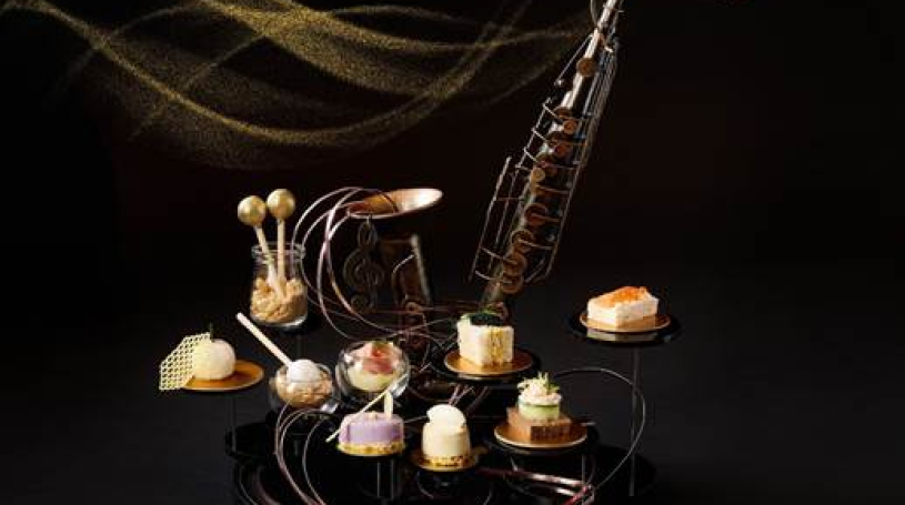 The Jazz Afternoon Tea presents a selection of savouries and sweets on a unique tea stand, artfully crafted from classic wind instruments like the French horn, saxophone and trumpet. This stand, with its elevated tiers for treats, seamlessly merges the culinary and musical worlds. Begin with an indulgent selection of savoury treats, from the refined Iberico ham paired with refreshing mint and compressed melon, to the rich smoked salmon on rye bread, enhanced with horseradish crème and ikura. For those with an affinity for traditional flavours, the Skagen toast - a classic Swedish shrimp masterpiece - and the decadent watercress and egg sandwich topped with truffle caviar are sure to captivate. As you transition to the sweeter side of the menu, freshly baked classic scones await, perfectly paired with clotted cream and strawberry jam. Dive deeper into a world of desserts with enticing strawberry truffles, salted caramel lollipops enrobed in sumptuous chocolate, fragrant lavender and white chocolate mousse, tart green apple mousse and a lavish honey & lemon cheesecake. Enhance your afternoon indulgence with a handpicked selection of TWG teas or a hearty Segafredo coffee. For an added touch of luxury, guests can elevate their experience with a sparkling glass of prosecco.