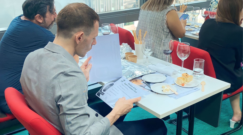 La Camera ha dato il benvenuto a Giancarlo Stefana, Sales Manager di Jet Italian Deli, che ha condotto la masterclass e l'abbinamento dei formaggi con Ivana Campa, assistente della TICC. L'atmosfera che si è creata durante l'evento è stata davvero affascinante, con i partecipanti pienamente coinvolti nell'esperienza di degustazione di vari vini rossi e bianchi italiani insieme a formaggi, focacce e grissini intinti nel miele di ciliegia selvatica di Polla e nel paté di olive taggiasche.