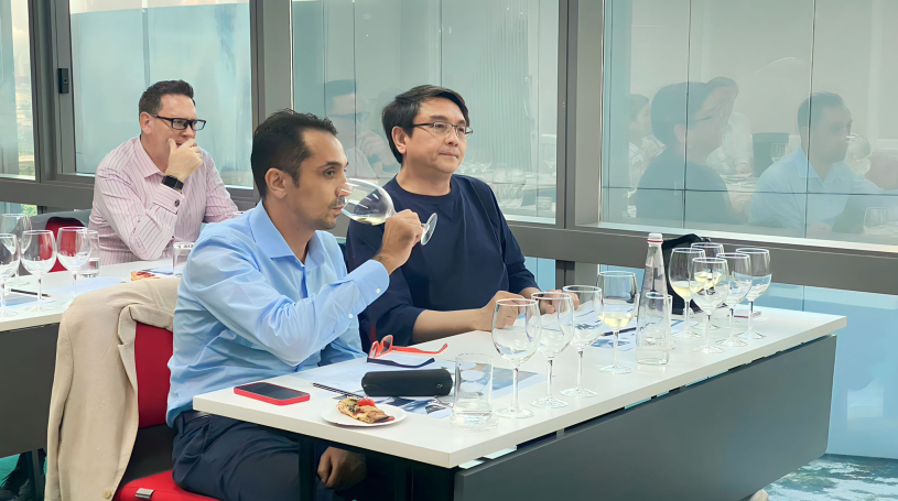During this session, all participants had the opportunity to expand their wine knowledge by blind tasting five different wines from Umbria, which included La Carraia Orvieto DOC, La Carraia Albeo Umbria Bianco IGP, La Carraia Cabernet Sauvignon Umbria IGP, Solcato Umbria IGP, and Sacer Montefalco Sagrantino DOCG. At the end of the event, Ms. Aliaksandra awarded the prize to the attendee who answered correctly in the Q&A session, and the prize was the Solcato Umbria IGP wine.