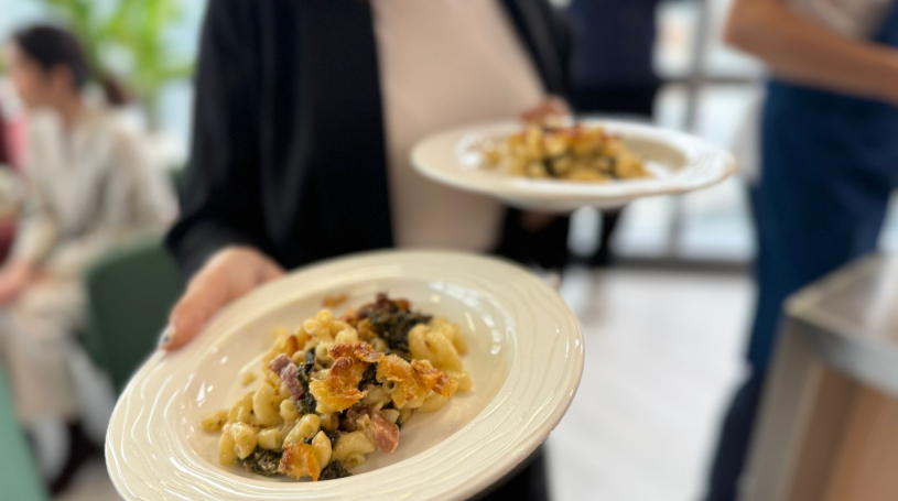 The Professional Masterclass was led by Mr. Miro Mattalia, Executive Chef at Cetara Restaurant in Bangkok. Chef Miro, to whom we extend our gratitude for his support and collaboration, prepared four delicious Italian pasta dishes using only Rustichella d'Abruzzo pasta combined with the finest ingredients: calamarata con ragu’ di tonno, featuring calamarata pasta with a flavorful tuna ragu; Garganelli con pasta di salsiccia e cime di rapa, a combination of garganelli pasta with savory sausage and broccoli rabe; fettucine con peperoni e vongole affumicate, blending fettucine pasta with smoked clams and peppers; Maccheroni al forno alla Gricia, baked maccheroni enriched with guanciale and Pecorino Romano cheese.