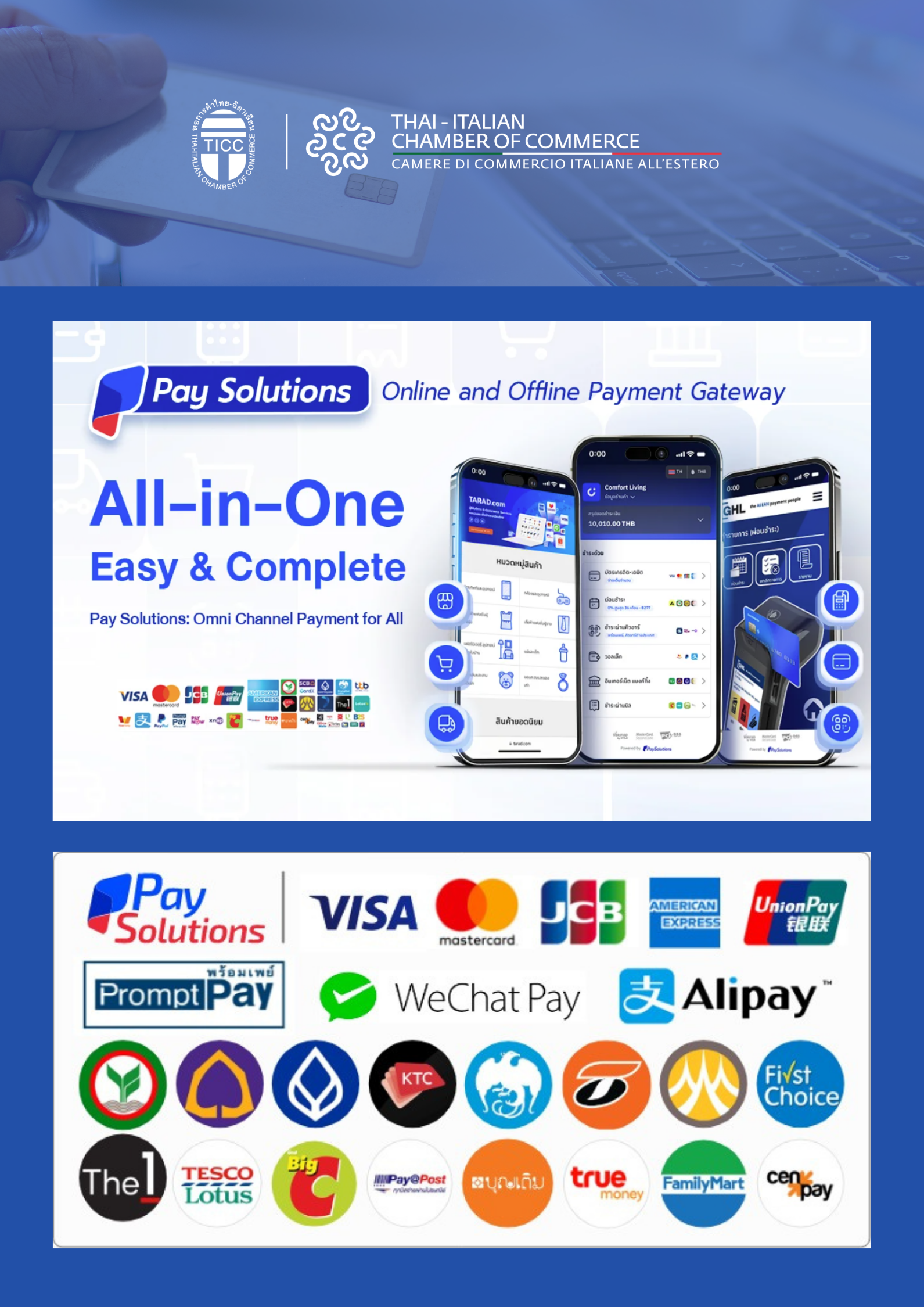 The Thai-Italian Chamber of Commerce (TICC) is pleased to inform you that a new payment channel has been implemented for events and services through PaySolutions.